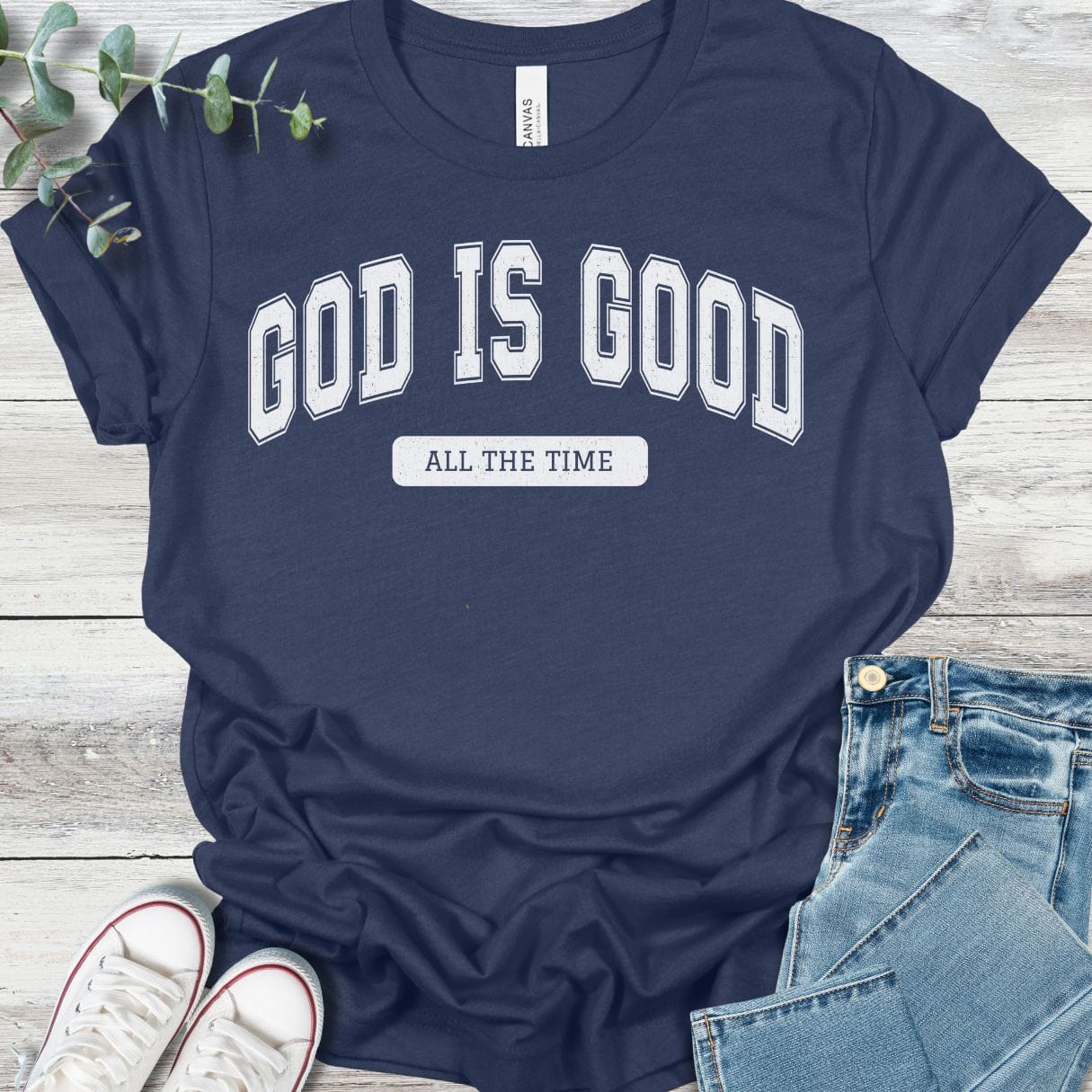 This Bella+Canvas tee carries the timeless declaration: “God is good all the time.” It’s a bold reminder of His unchanging faithfulness, a phrase that resonates in every season of life. A perfect way to share your faith in everyday conversations and point others back to the goodness of the Lord.