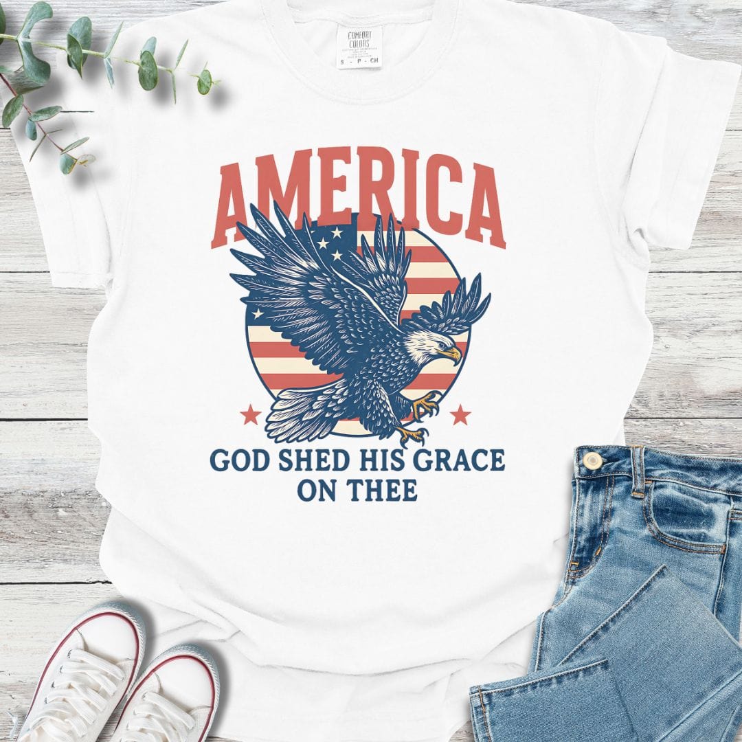 Show your love for faith and country with this Comfort Colors tee that pairs bold patriotic style with a prayer for God’s grace. With its vintage vibe, it’s perfect for July 4th, summer weekends, or anytime you want to wear your values loud and clear. A timeless piece for those who want to point to the true source of freedom.