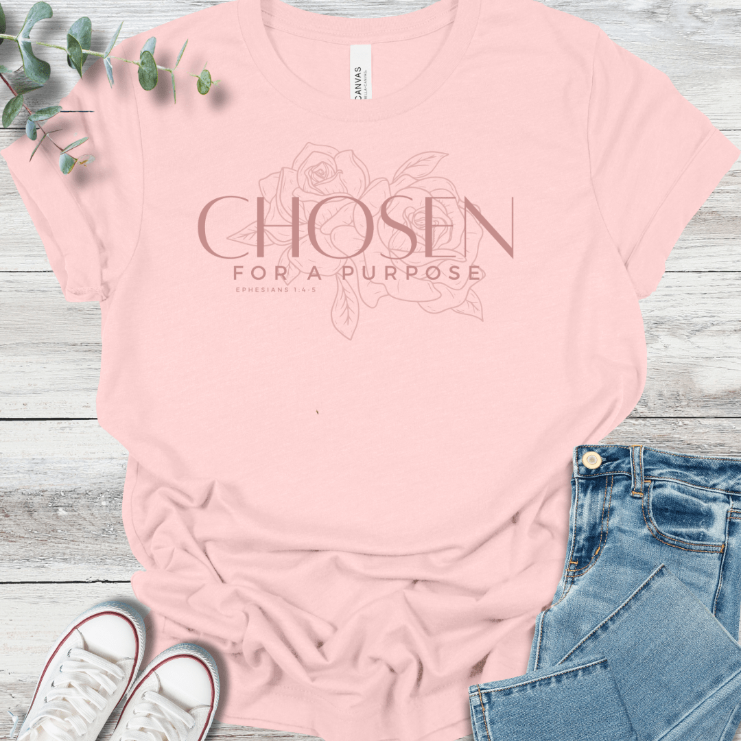 Chosen for a purpose—this Bella + Canvas tee is inspired by Ephesians 1:4-5, a powerful reminder that God set you apart with intention. Designed for comfort and style, it’s a bold way to share your faith in your everyday life.