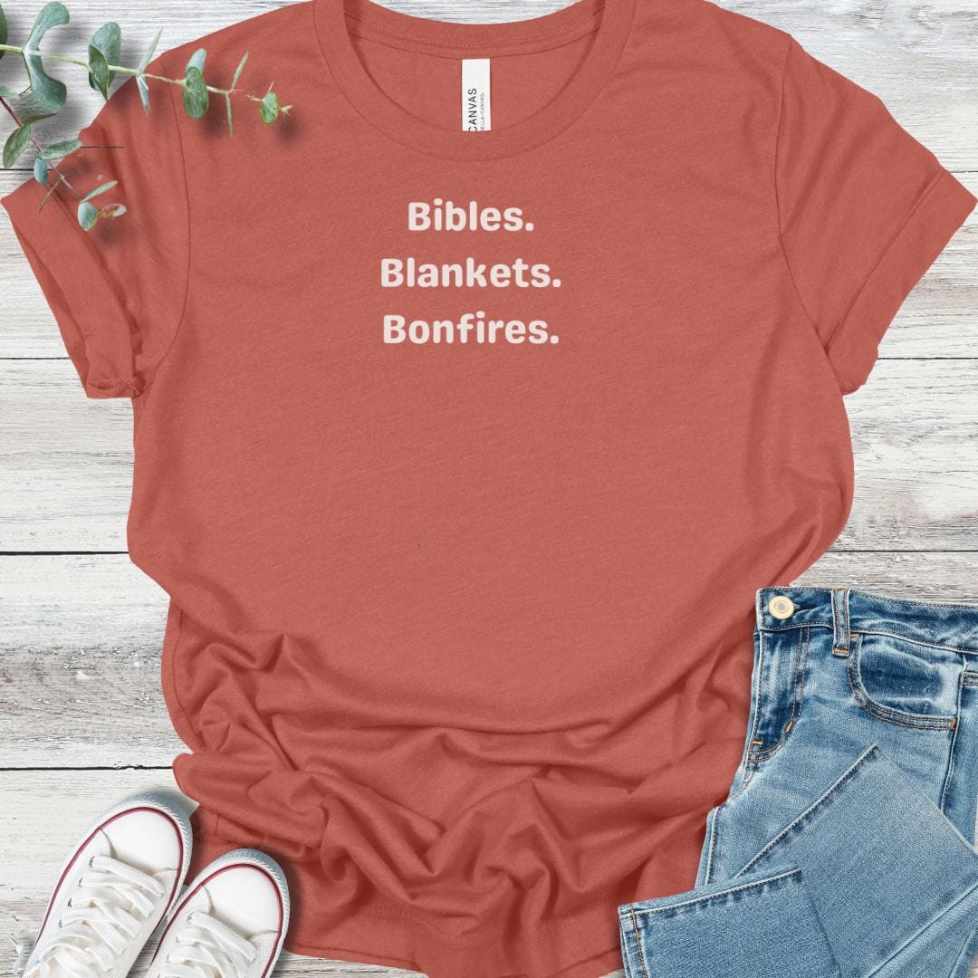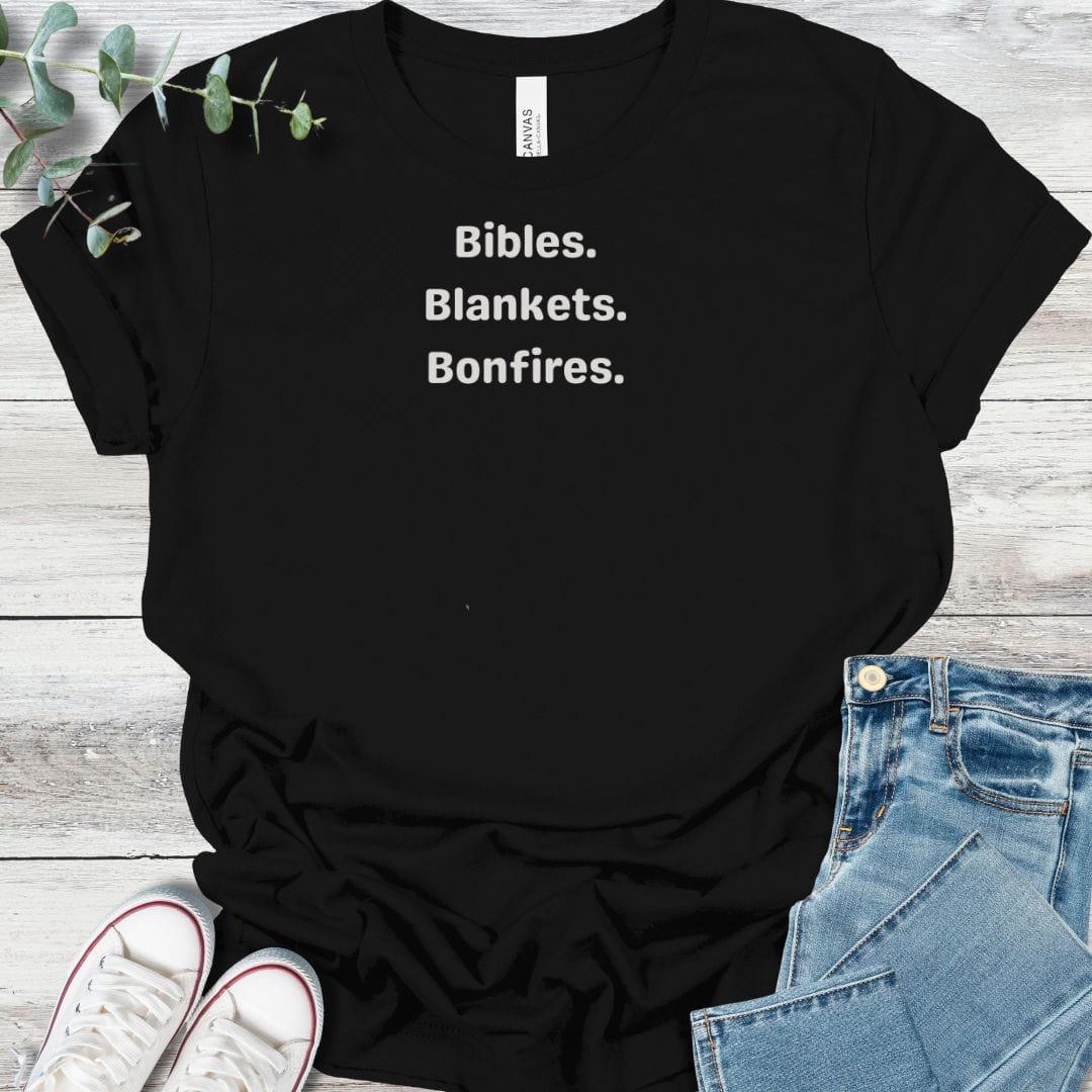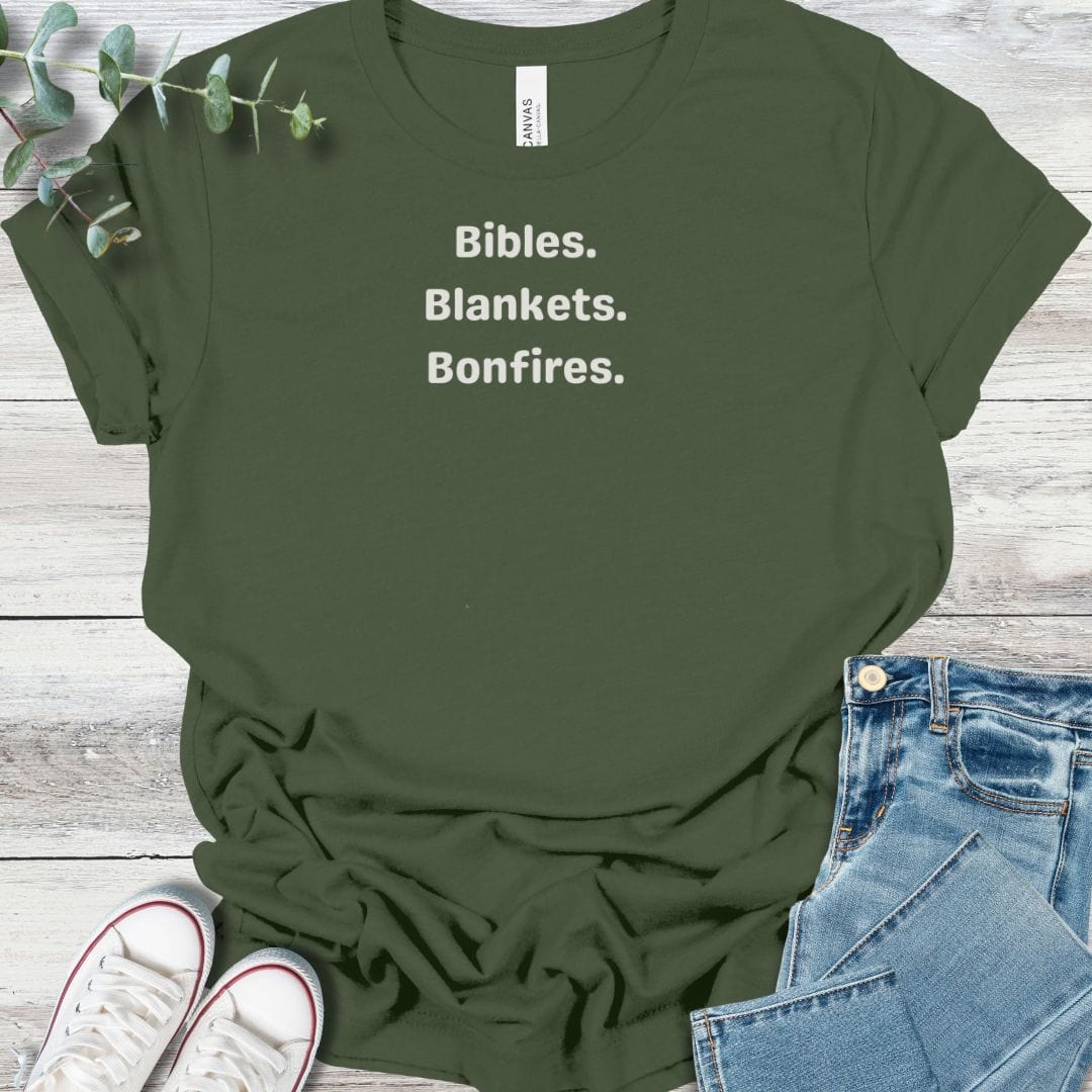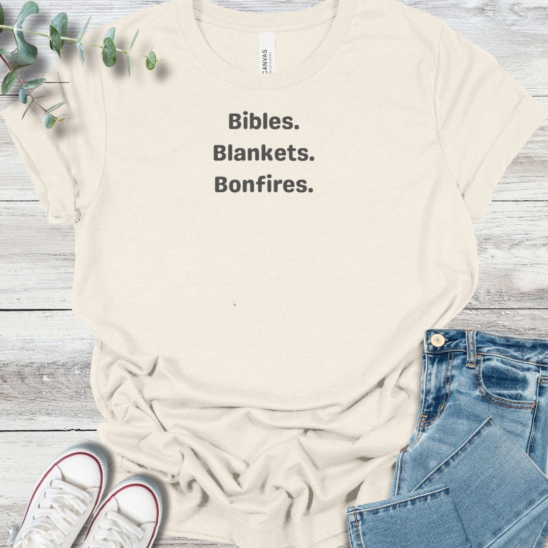 This Bella+Canvas tee highlights the rhythm of fall gatherings with faith at the center—Bibles open, blankets wrapped tight, and bonfires glowing. It’s a seasonal piece that captures the joy of community rooted in Christ.