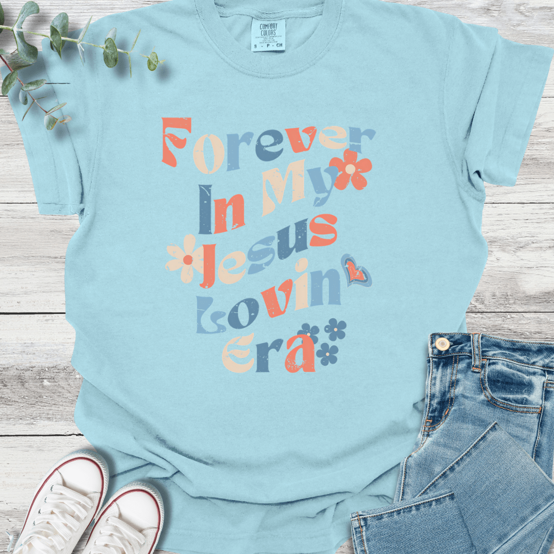 Step into your Jesus-lovin’ era with this fun and vibrant t-shirt! Featuring playful retro typography and a groovy vibe, this tee is a joyful declaration of your lifelong love for Jesus. Crafted with the soft, vintage feel of Comfort Colors 1717, it's perfect for anyone who’s forever embracing their faith in style.