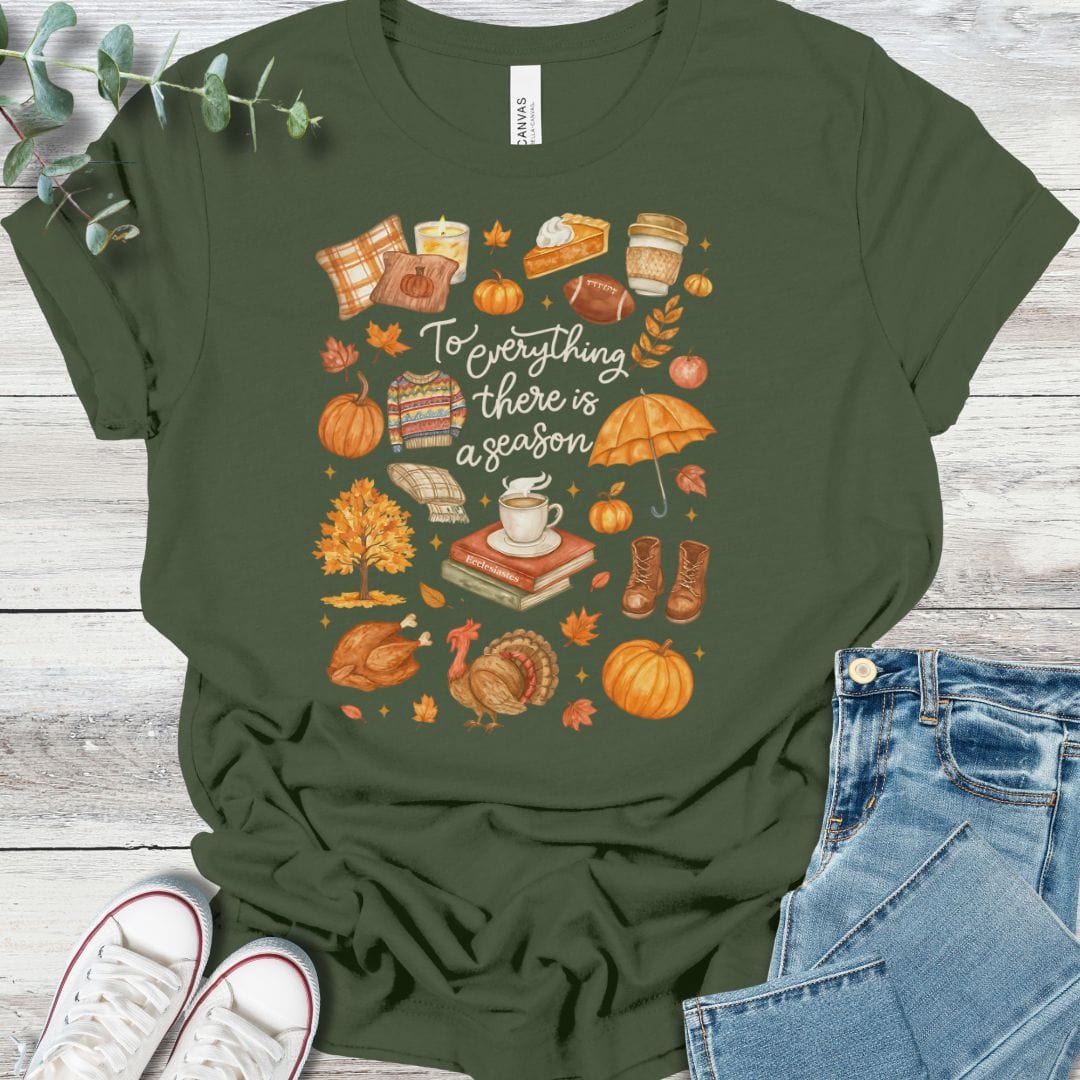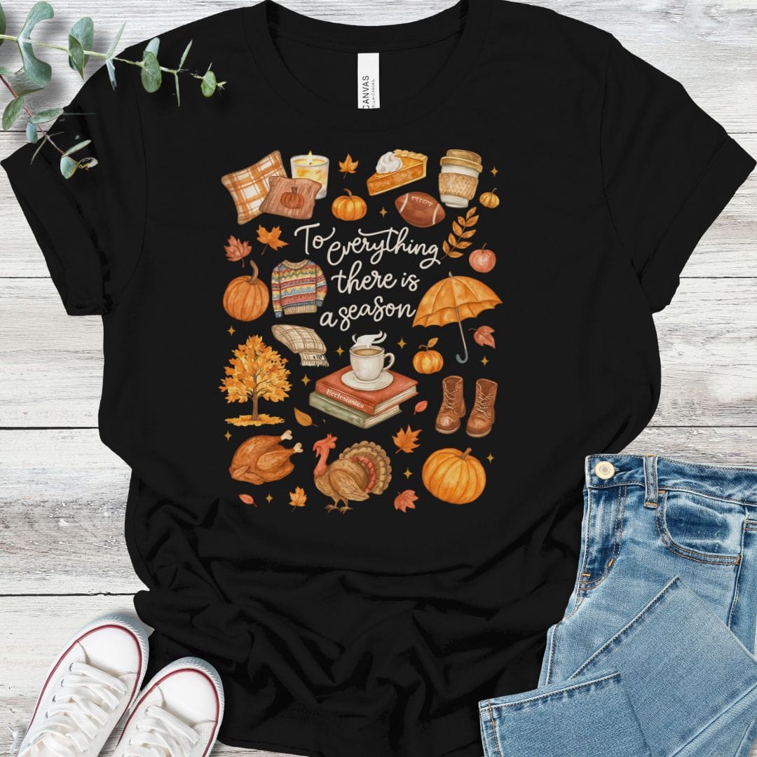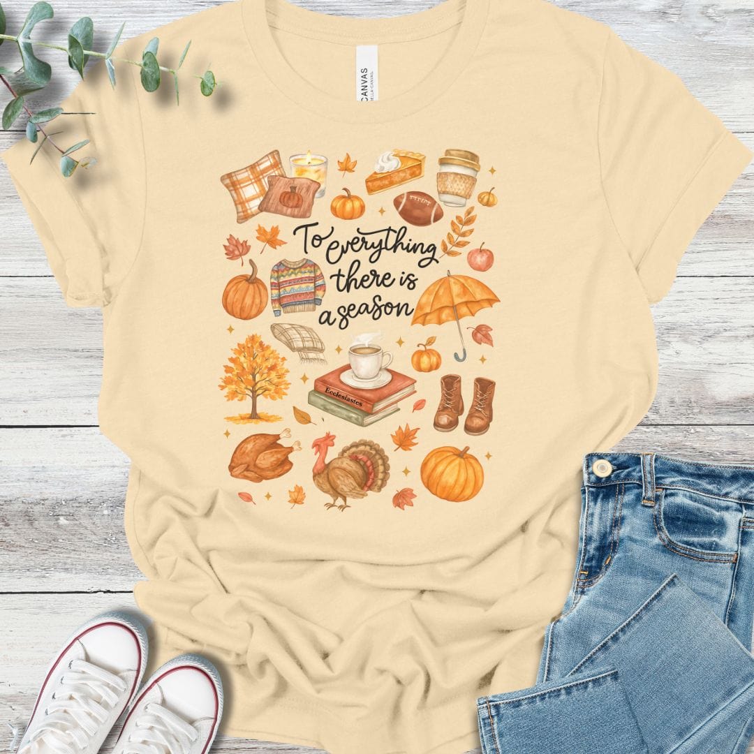 This Bella+Canvas tee features the words of Ecclesiastes 3:1, reminding us that God appoints a time for every season of life. Surrounded by warm fall elements, it carries both a cozy autumn feel and a timeless biblical truth. A Scripture-rooted design that pairs seasonal charm with eternal perspective.