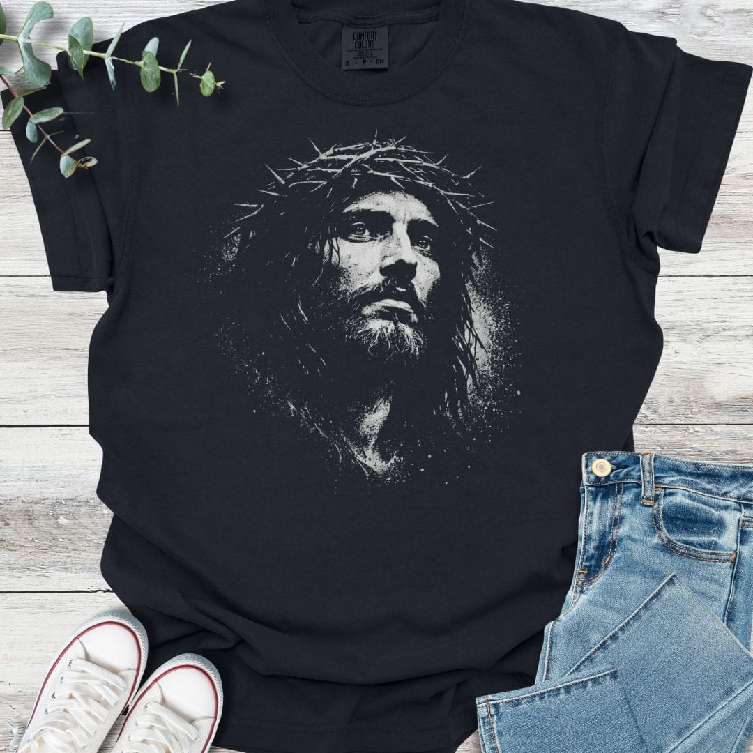 A striking portrayal of Christ in His suffering, drawing the heart back to Isaiah 53 and the cost of redemption. This Comfort Colors tee keeps the focus where it belongs—on the Savior who endured the cross and bore our sin. Wear it as a bold reminder that your hope was purchased, not earned.